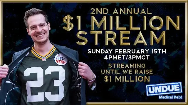 Last February, we streamed for nearly a week and raised over $1 million for Children of Fallen Patriots. I'll be going live and will be streaming until we raise $1 million for Undue Medical Debt. Undue Medical Debt is a nonprofit that purchases large portfolios of medical debt around the United States, from hospitals,